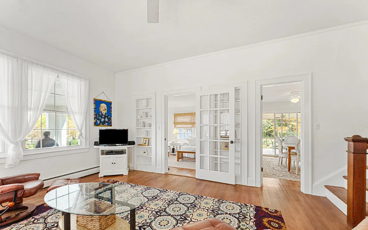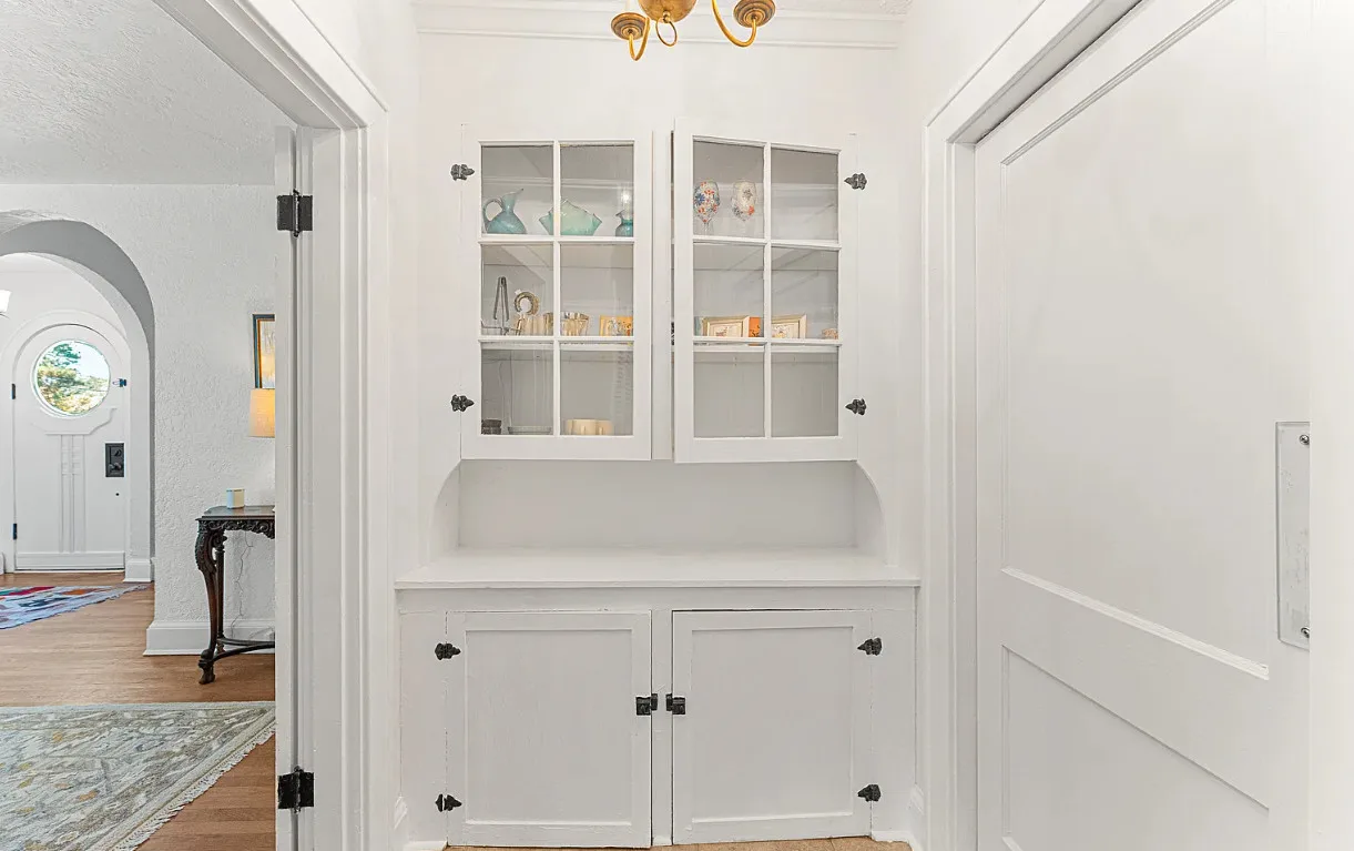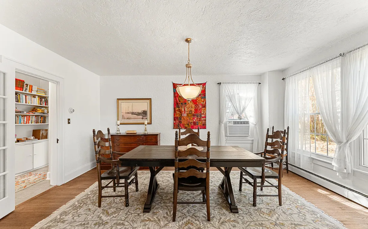 The bright and open kitchen connects seamlessly to a charming breakfast room and flows into a butler’s pantry—ideal for storage or entertaining prep. A formal dining room with built-ins and large windows provides the perfect setting for family gatherings or dinner parties.