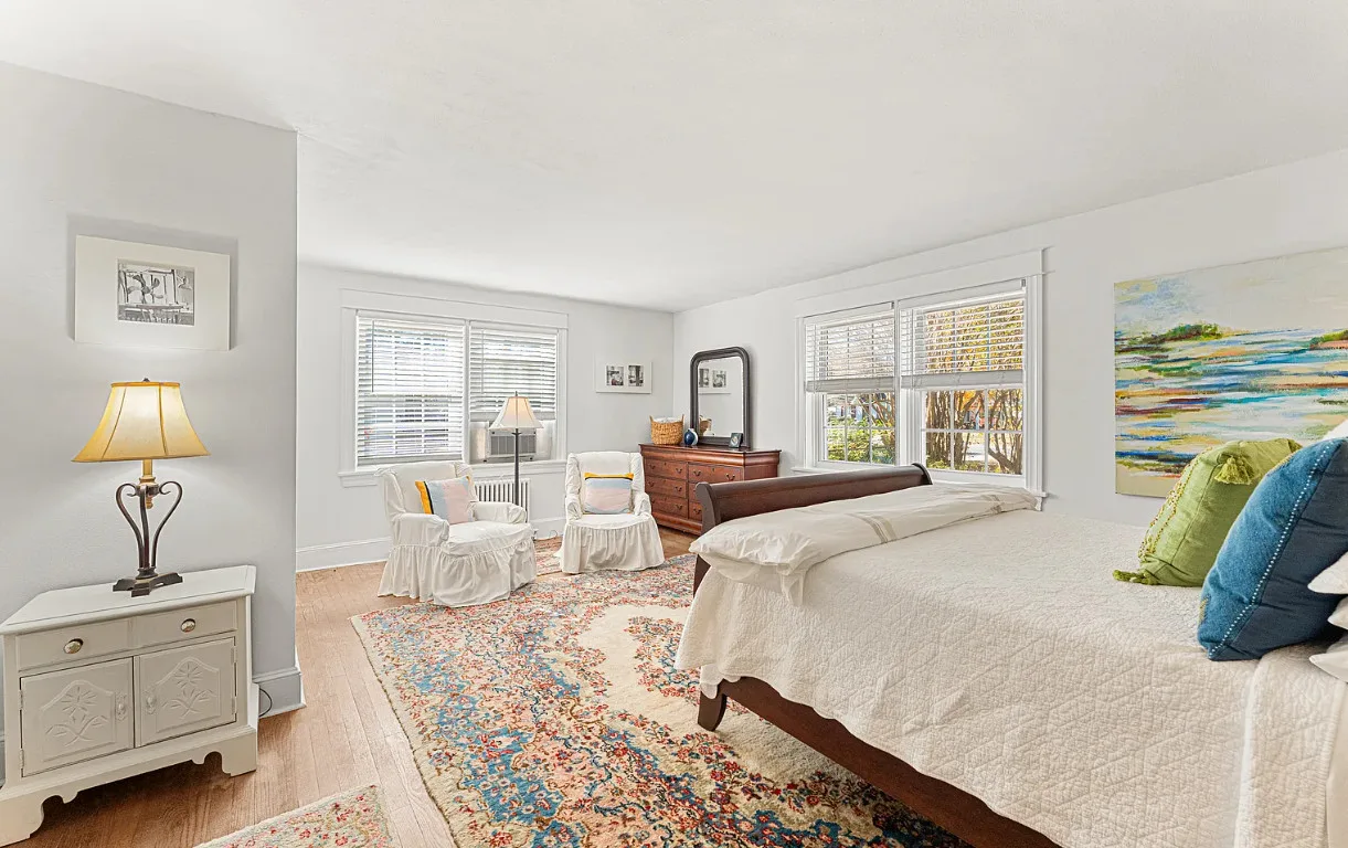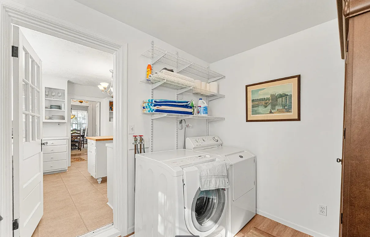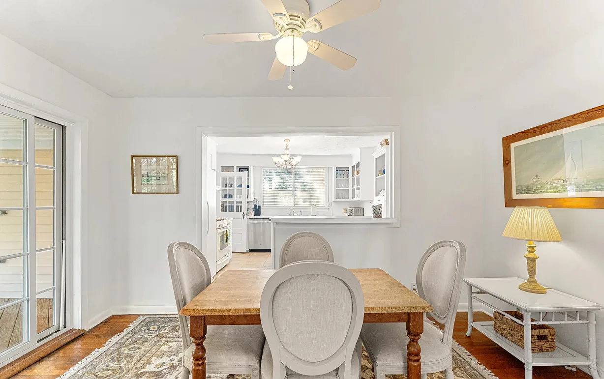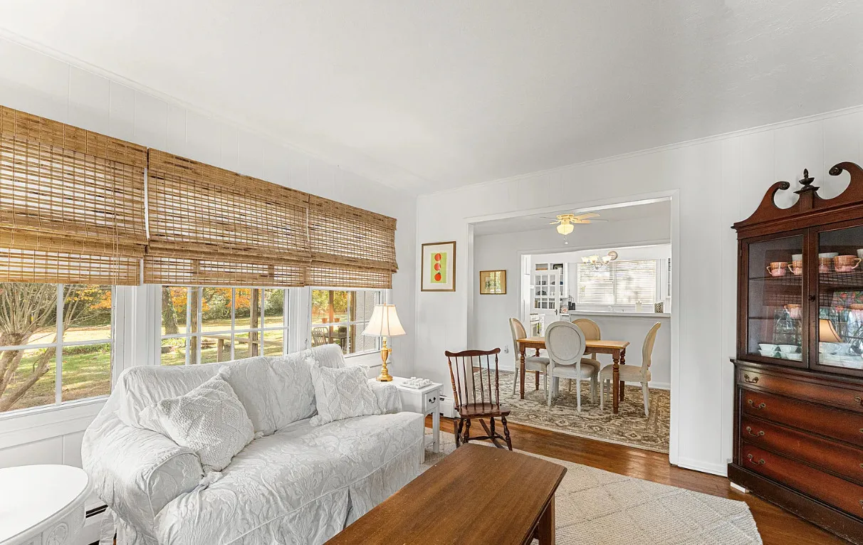 The bright and open kitchen connects seamlessly to a charming breakfast room and flows into a butler’s pantry—ideal for storage or entertaining prep. A formal dining room with built-ins and large windows provides the perfect setting for family gatherings or dinner parties.