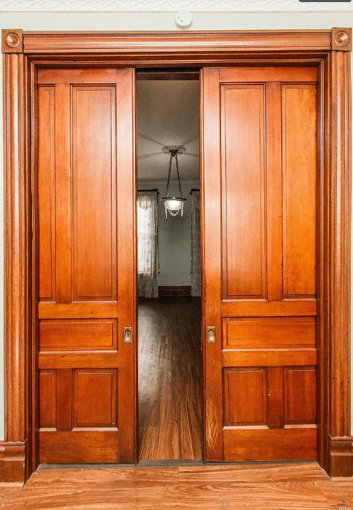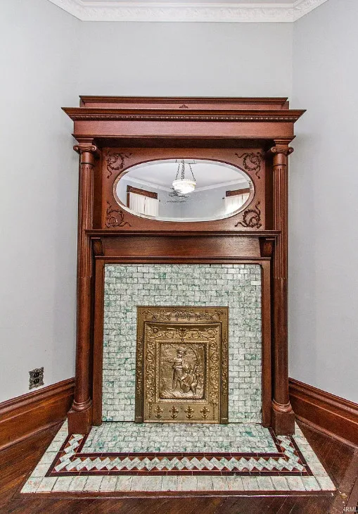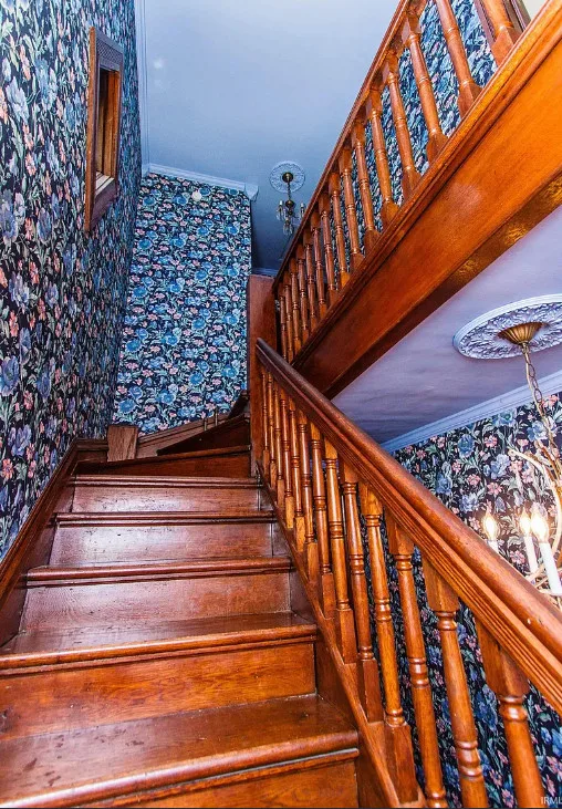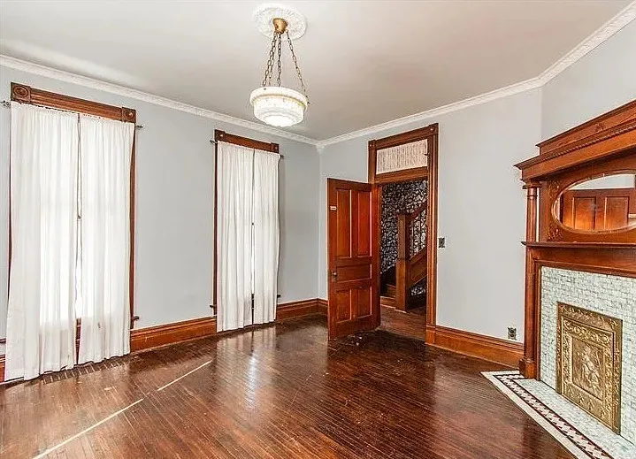 Inside, you’ll find rich original woodwork, stained glass windows, and beautiful wood floors that exude warmth and character. The graceful staircase, wide baseboards, pocket doors, and transom windows showcase the home’s artistry, while ornate mantels and a stained-glass front door complete the historic charm.