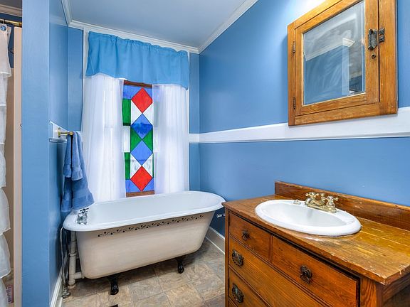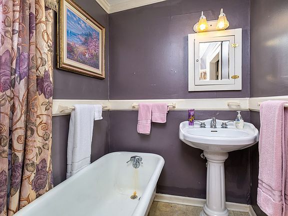 - Primary Suite: Located on the main floor; features a chandelier and a primary bath with a clawfoot tub and walk-in shower.