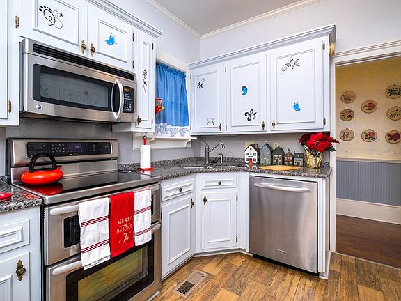 - Kitchen: Updated with granite countertops, stainless steel appliances, farmhouse sink, double oven, and an eat-in breakfast area.