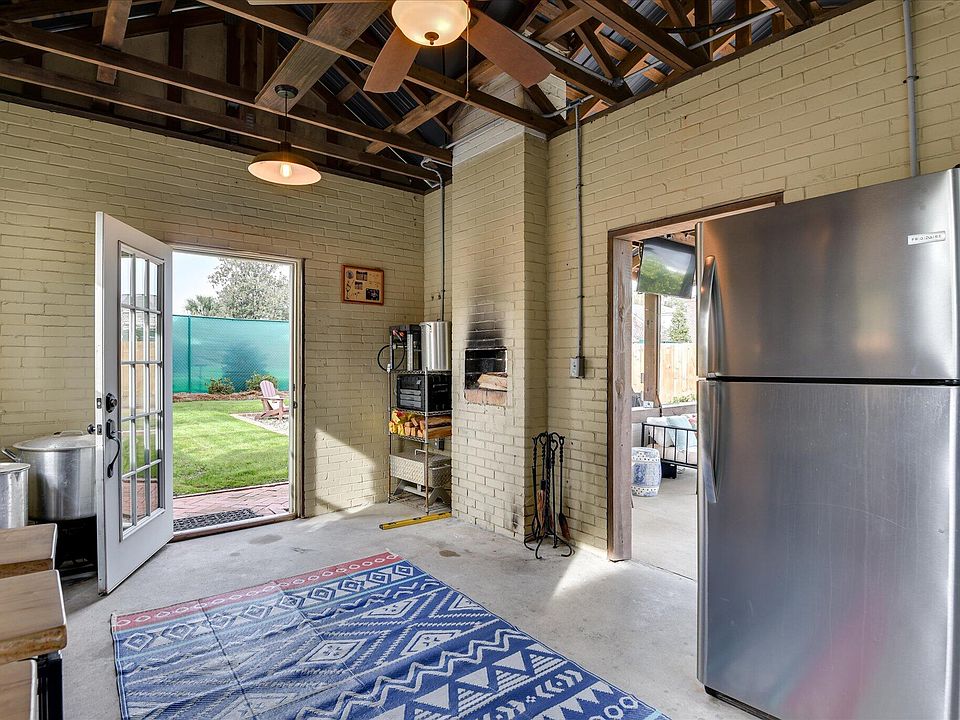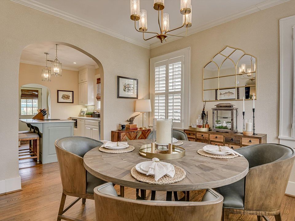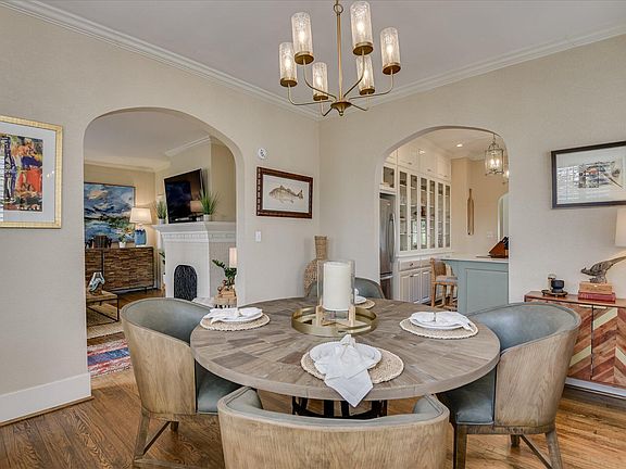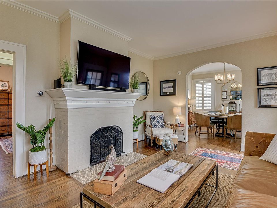 • Architectural Details: Classic arched entries, masonry fireplace in the living room, and built-in features.