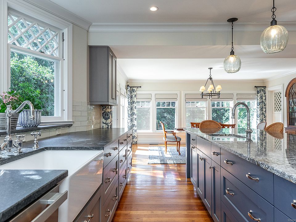 • Kitchen: Remodeled with granite counters, kitchen island, pantry, and high-end appliances (Sub-Zero, wine chiller).
