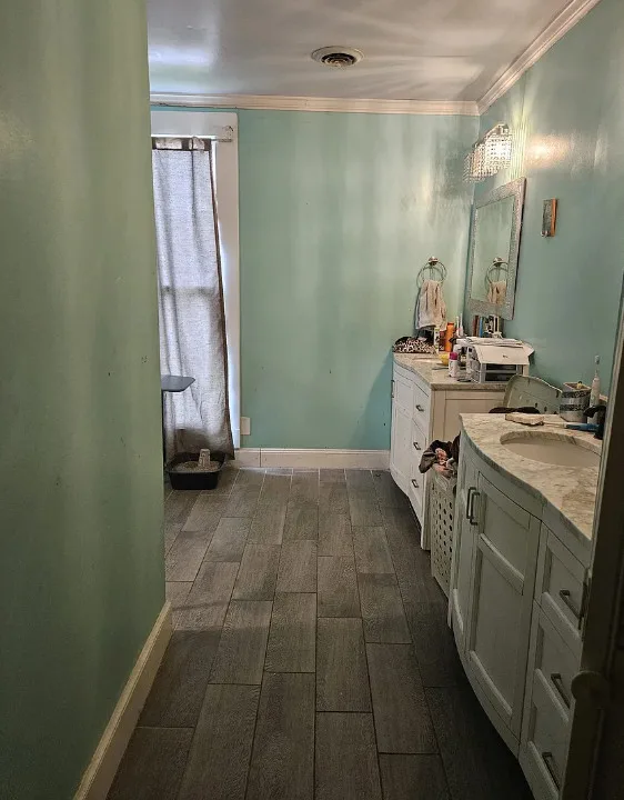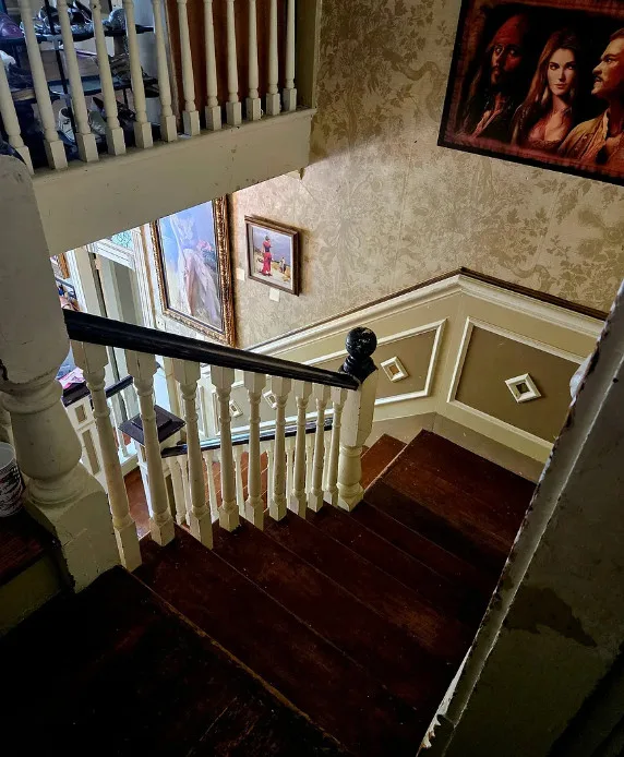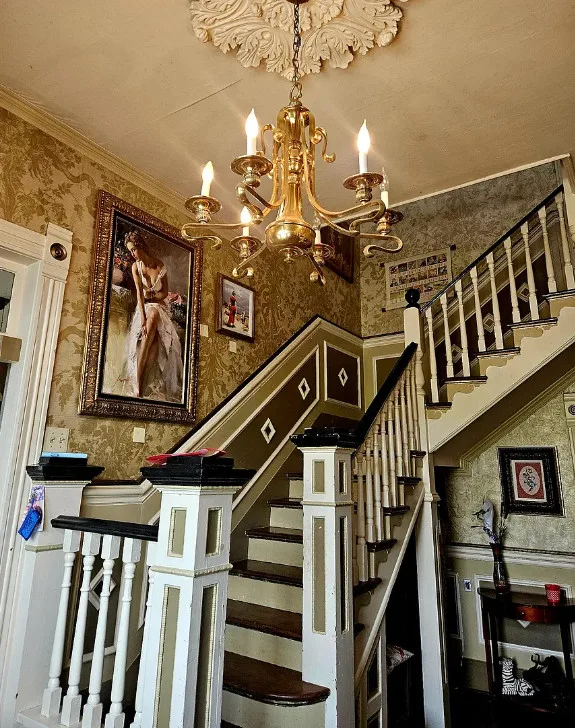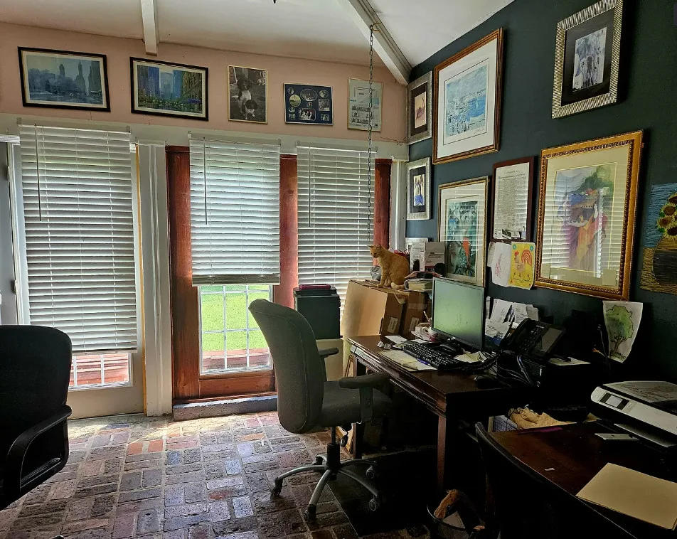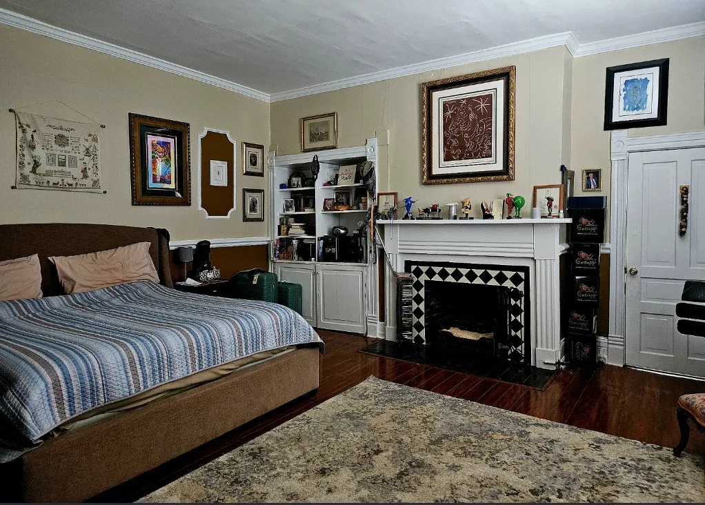 Featuring four bedrooms and three and a half baths, this stately home welcomes you with a classic portico and grand staircase. Inside, you’ll find intricate details such as crown molding, transom windows, French doors, a stunning chandelier, and built-in bookshelves. The front parlor rooms retain their original hardwood floors, while the dining and kitchen areas showcase authentic Antebellum brick walls.