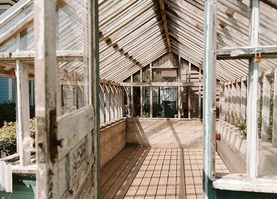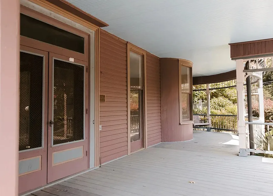 Each bedroom is generously sized, with private balconies and original fireplaces offering warmth and character throughout. Step outside and enjoy multiple entertainment spaces — a covered wraparound front porch with a swing, a screened back porch, a bricked patio, and even a restored greenhouse that adds to the property’s charm.