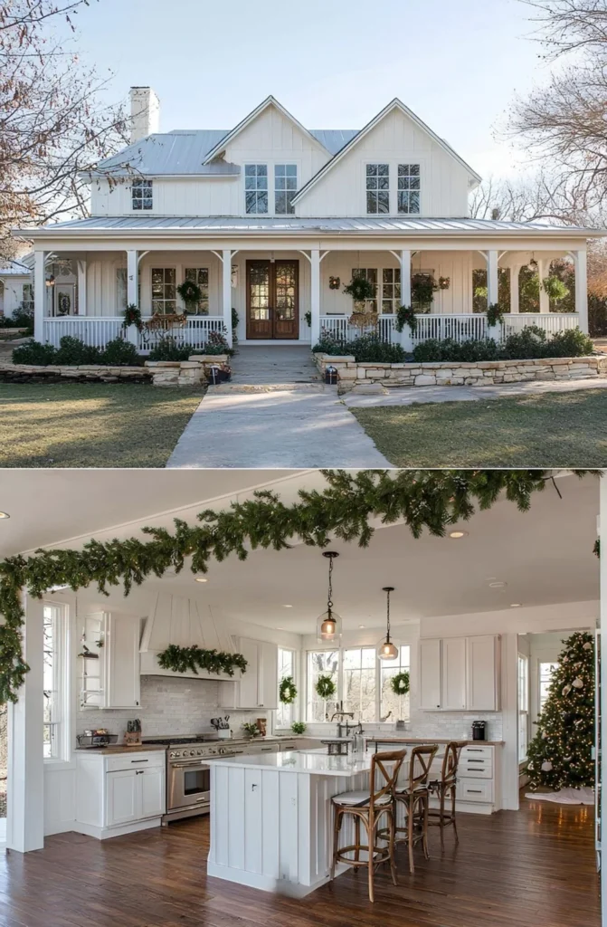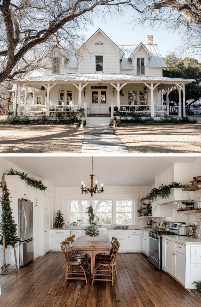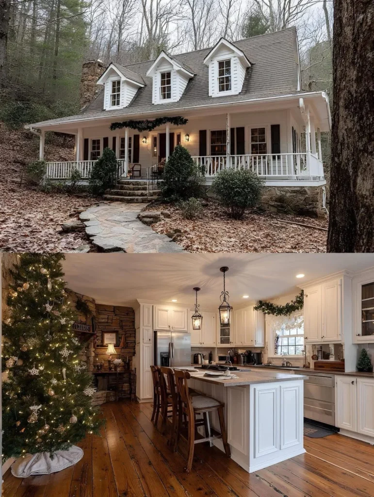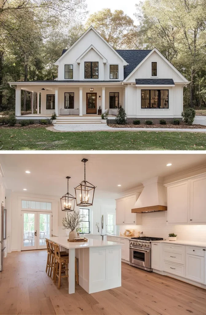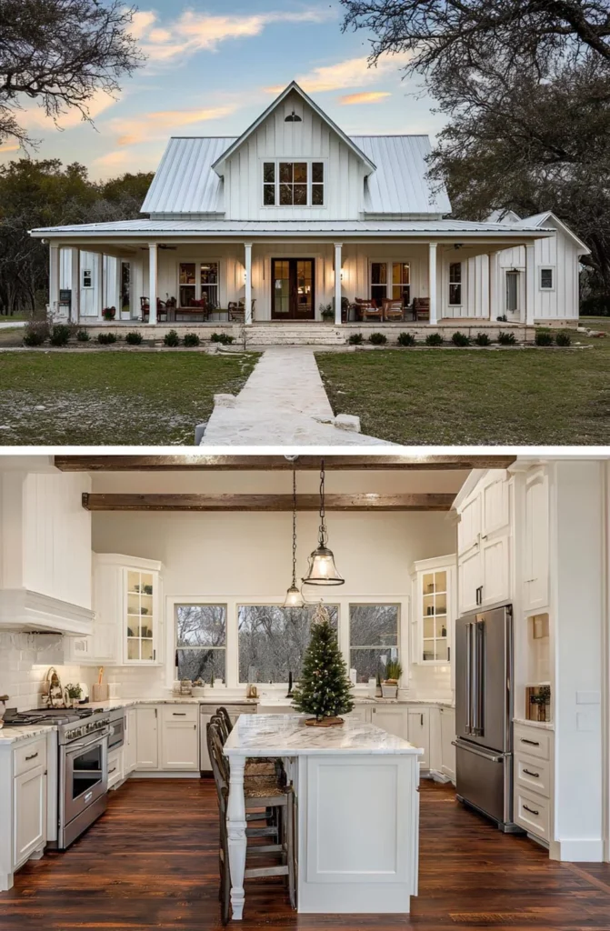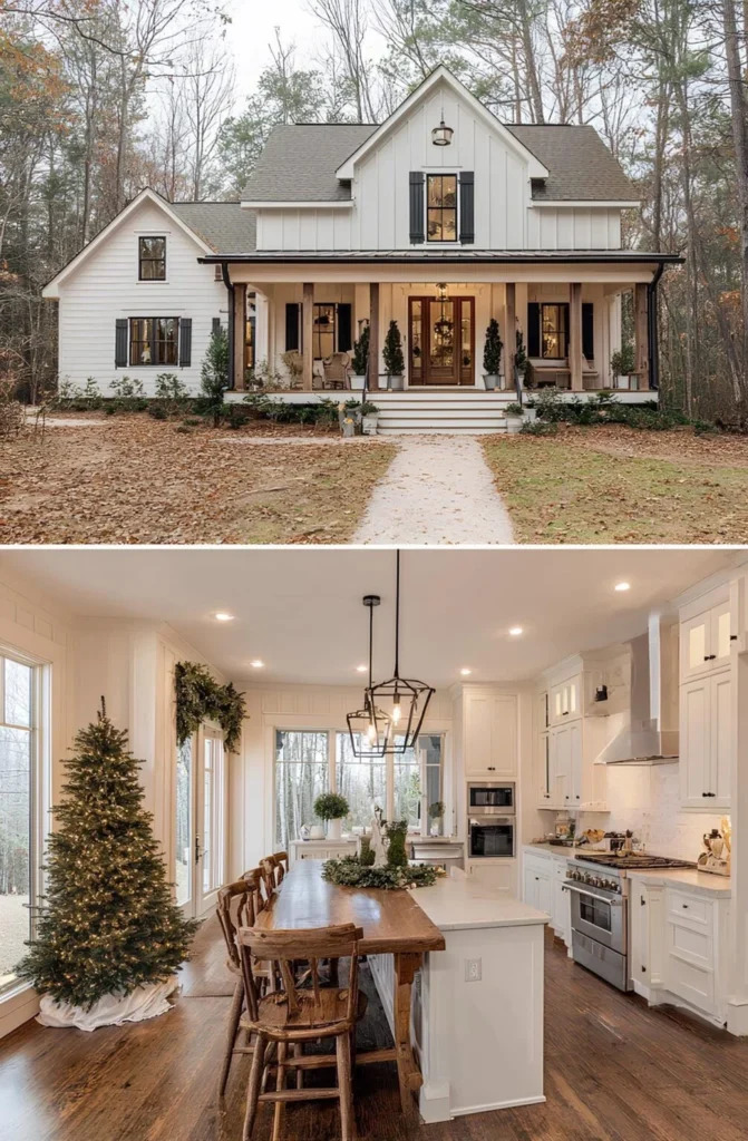 This farmhouse was built by a couple who had waited nearly a decade to find the right piece of land — a quiet, wooded lot close enough to town for groceries, but far enough for stars at night. They knew exactly what they wanted: an open kitchen with light pouring in, and space where their kids could spread out without anyone being too far apart. The wraparound porch became a favorite spot for homework and lemonade. They didn’t rush it — saved carefully, chose their finishes one step at a time, and ended up with a home that fits them perfectly.