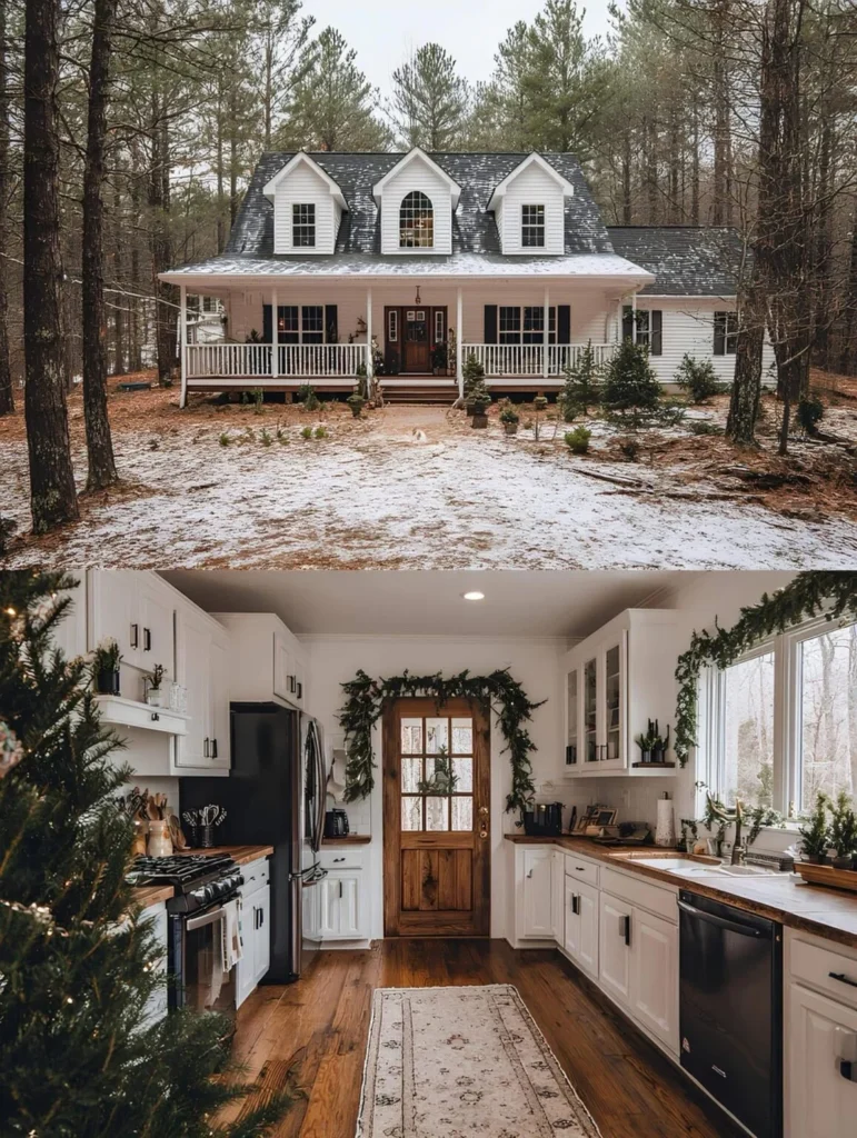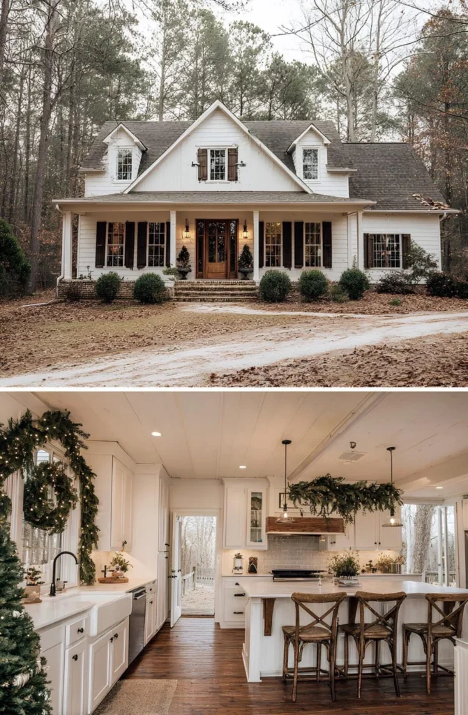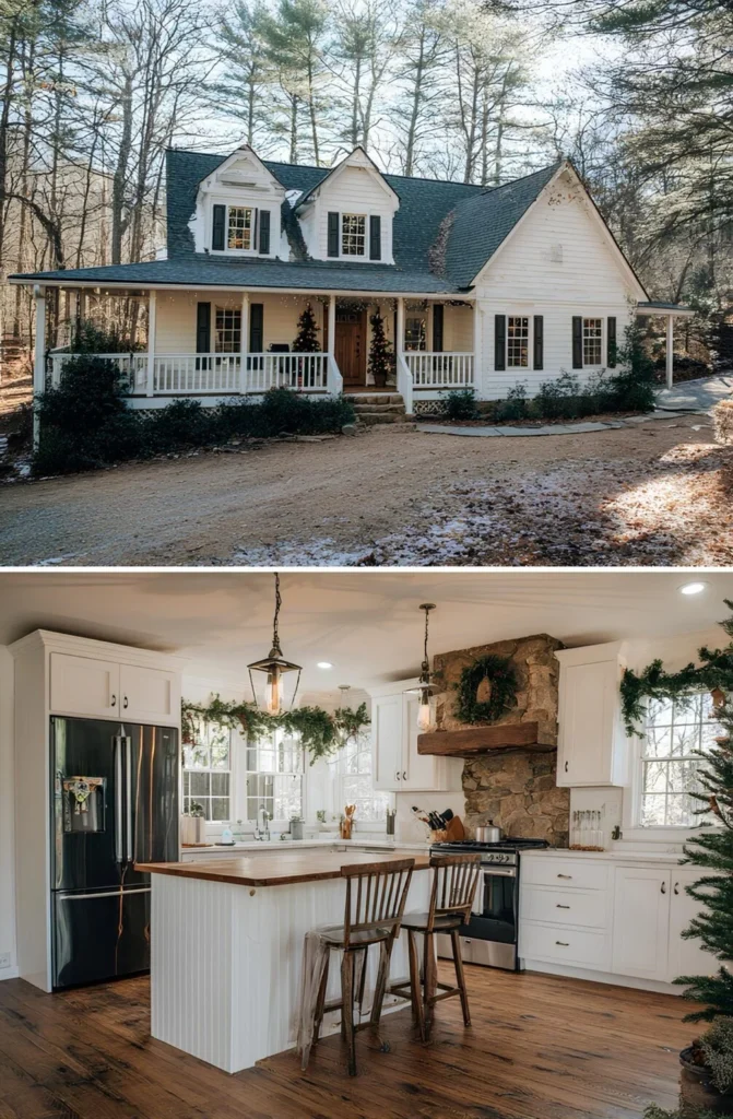 After years of saving and sketching out ideas, this family built their farmhouse just outside a quiet Tennessee town. Their goal was a kitchen big enough for baking days, with views of the woods and space to host friends without it ever feeling formal. The rustic vent hood came from old barn wood on their property, and the layout — based on an AY Custom Home plan — gave them everything they needed without going over budget. Now, during the holidays, the kitchen glows with garland and smells like cinnamon rolls. It’s exactly what they hoped home would feel like.