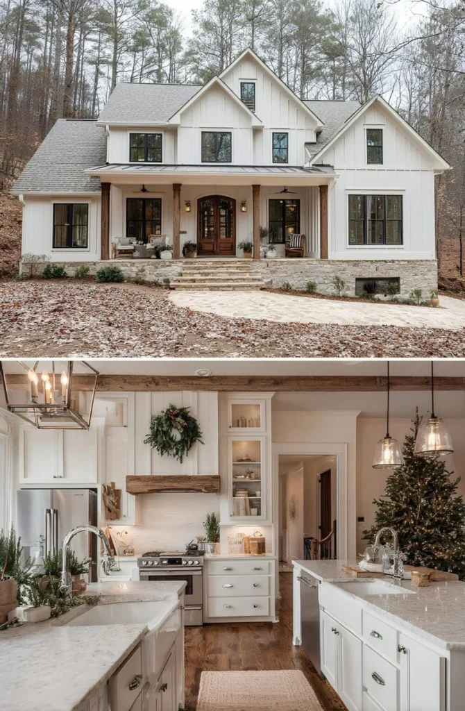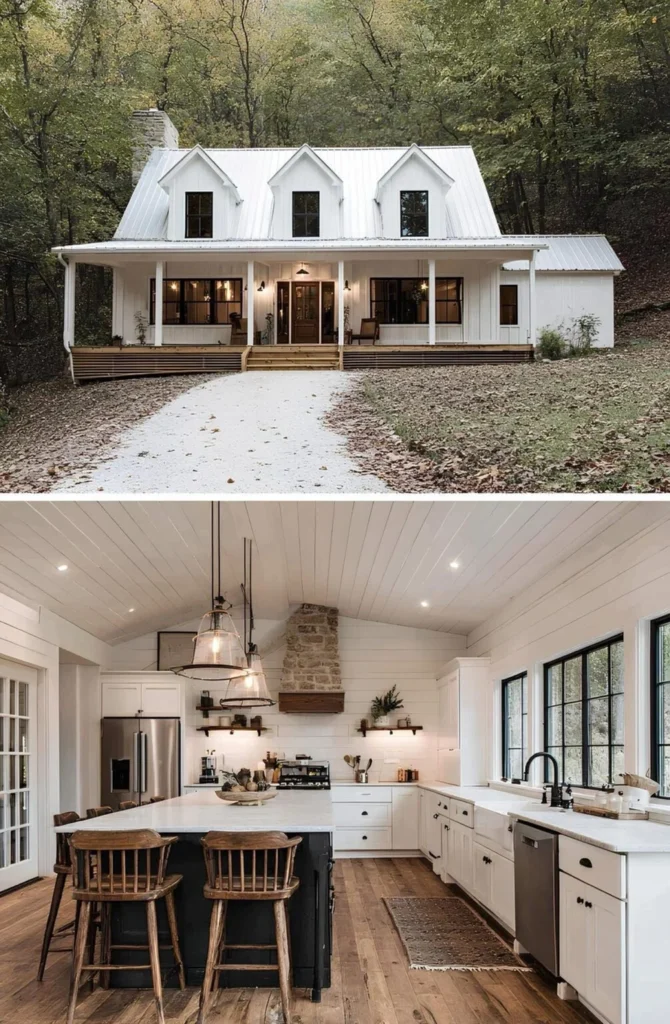 This farmhouse was designed by a young couple who traded their city condo for a piece of wooded land in Tennessee. They wanted peace, privacy, and the kind of life where they could hear birds instead of sirens. The kitchen, with its stone hearth, has become the heart of everything — from weeknight dinners to weekend sourdough experiments. They didn’t overbuild, choosing quality over quantity and keeping their budget in check. It’s the kind of home where you take your boots off at the door, and no one’s in a rush to be anywhere else.