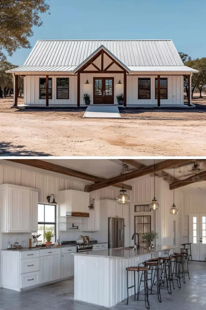 This farmhouse sits on open Texas land, built by a couple who traded city commutes for dirt roads and quiet evenings. They wanted a single-story home that was easy to maintain and open enough to host family cookouts without bumping elbows. The exposed beams and polished concrete floors were both budget-friendly and durable — perfect for dusty boots and muddy dogs. The kitchen island sees everything from salsa prep to morning coffee chats. They used a plan from AY Custom Home that kept things simple and smart. It’s not fancy, but it fits — and it’s theirs in every way that matters.