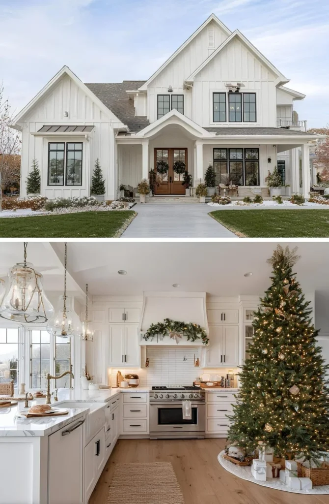 This modern farmhouse sits on a snowy edge of northern Utah, built by a growing family who knew they needed space — but also light. Floor-to-ceiling windows flood the kitchen with sunshine, and the open layout lets them host big holiday meals without feeling crowded. The Christmas tree goes up early every year in the corner by the stove, a tradition that started their first winter here. They worked closely with their designer to keep clean lines and maximize function. It’s a big home, yes — but every inch is lived in, loved, and filled with daily noise and joy.