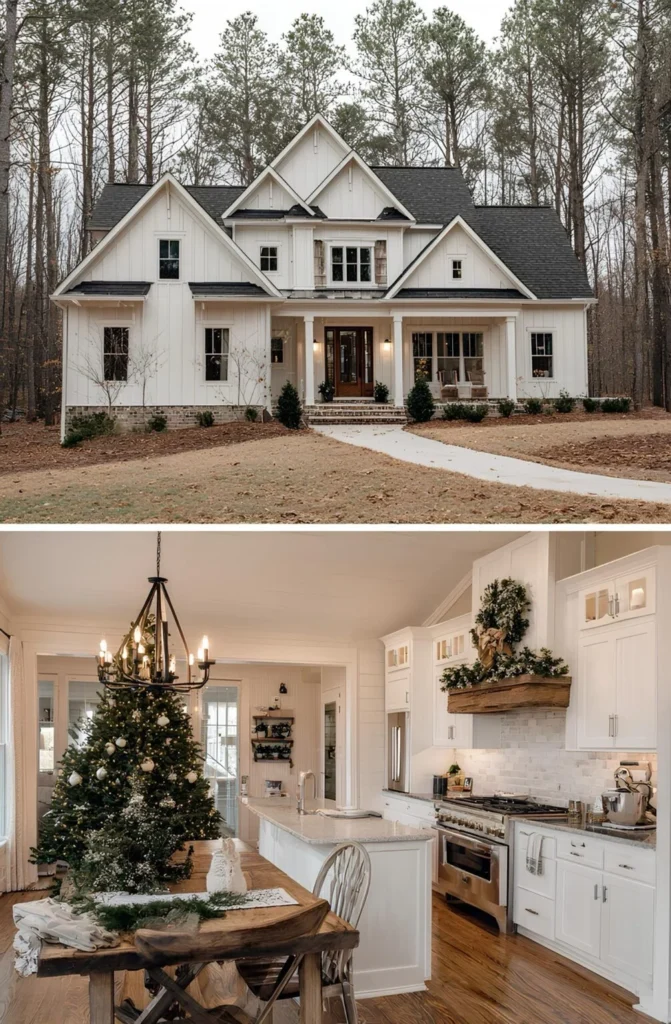 They built this farmhouse at the edge of the woods with one goal in mind — a place to pause. After years of renting and bouncing between states, the family finally found a plot that felt like theirs. The floor plan came from AY Custom Home and checked every box: space for guests, an open kitchen for family dinners, and a tucked-away office for remote work. It’s quiet here. The kids explore trails behind the house while meals simmer inside. At Christmas, the tree goes up in the breakfast nook, and they remember why they left the noise behind.