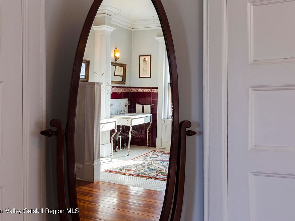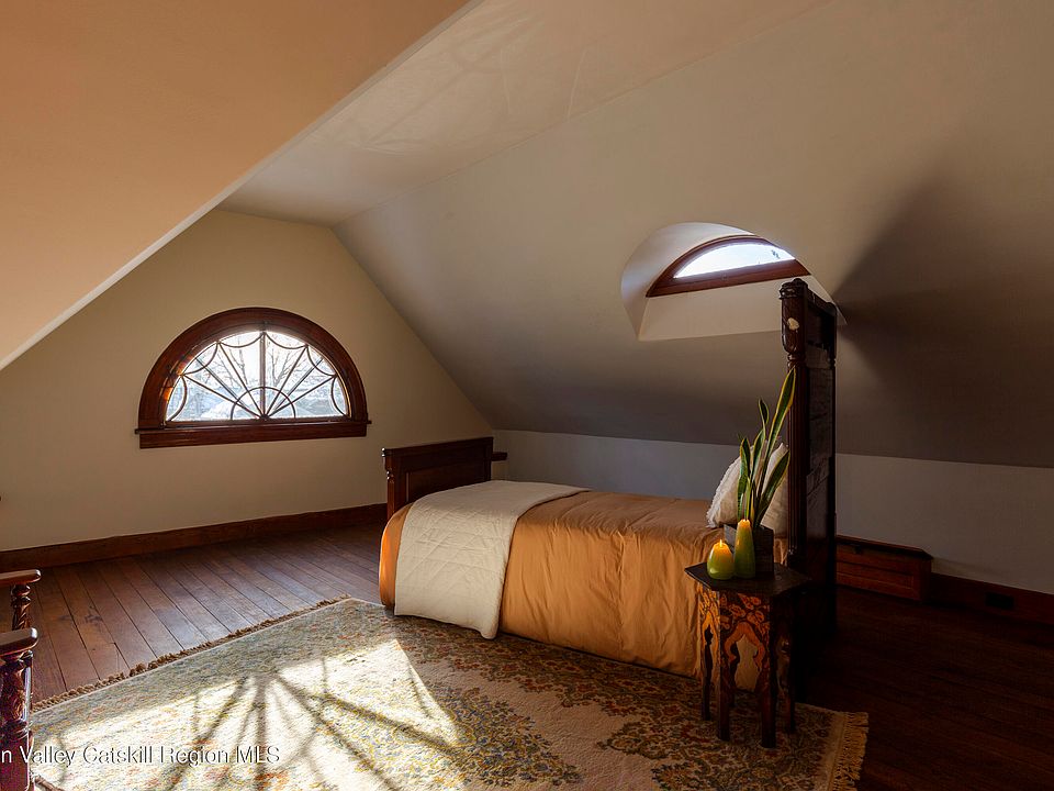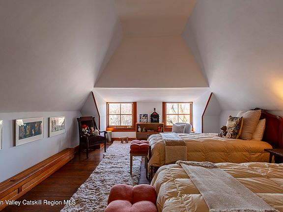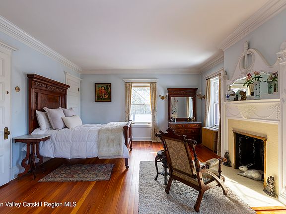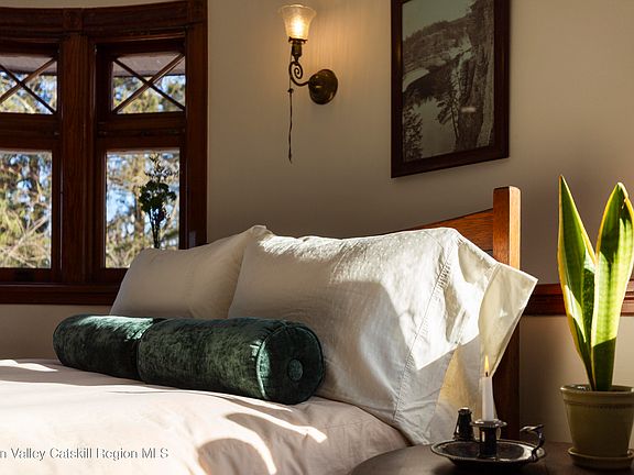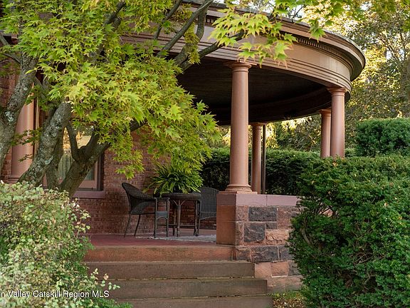 - Gardens: Established perennial gardens, a level lawn, and a winding path to a gazebo with views toward the Catskill Mountains.