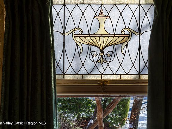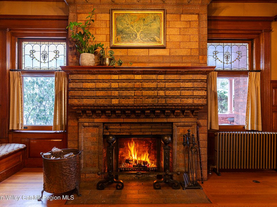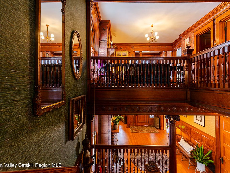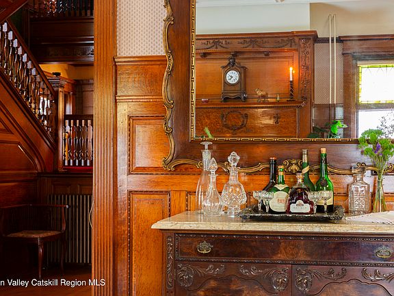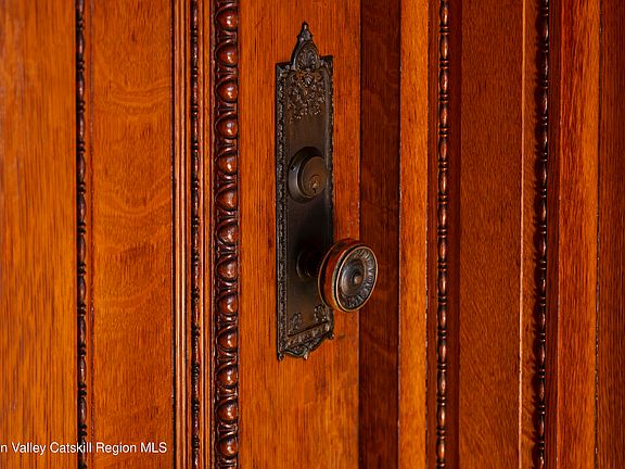- Historic Details: Original oak pocket doors, 24+ stained glass transoms, hand-carved woodwork, ash floors, and preserved 1896 wallpaper/drapery.