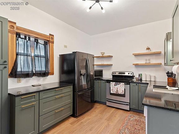 • Kitchen: Remodeled with granite countertops, soft-closing cabinets, floated shelving, and newer appliances.