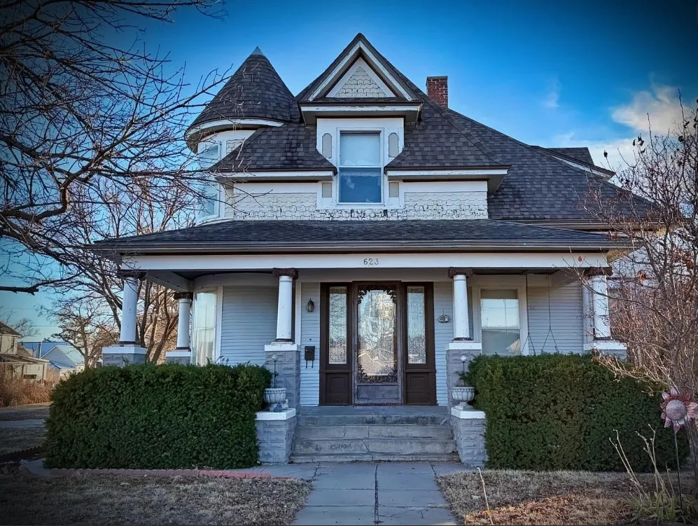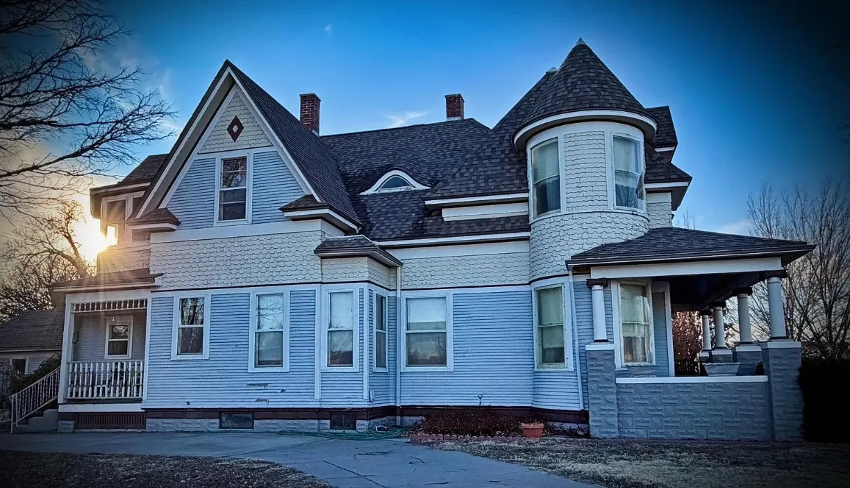 Step inside this beautifully detailed Queen Anne Victorian, built in 1912 and set on a .35-acre lot in Stockton, Kansas. Rich with original character, this home showcases gorgeous woodwork, hardwood floors, large pocket doors, picture rails, chair rails, and wide baseboards throughout.