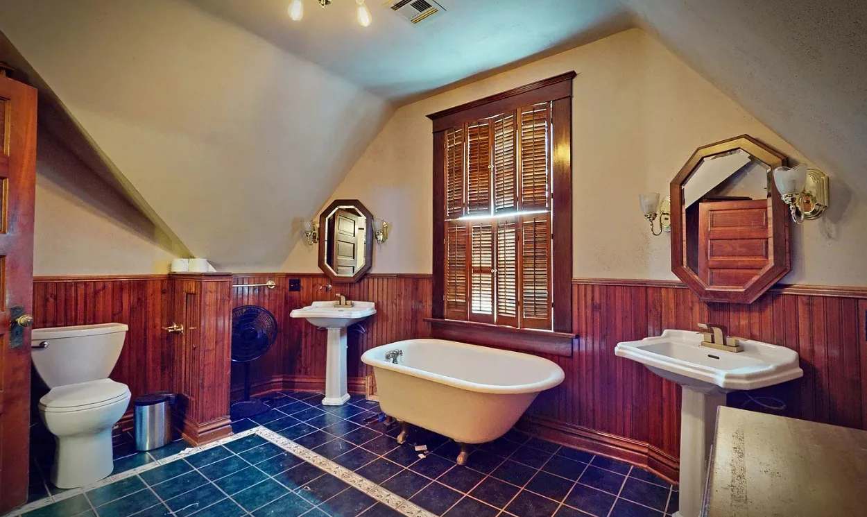 Double doors lead to a stamped concrete patio, perfect for entertaining or quiet outdoor enjoyment. Offered as is, this home presents a rare opportunity to restore, reimagine, and enhance a true historic gem—ideal for those who appreciate timeless architecture, fine craftsmanship, and the chance to add their own vision.