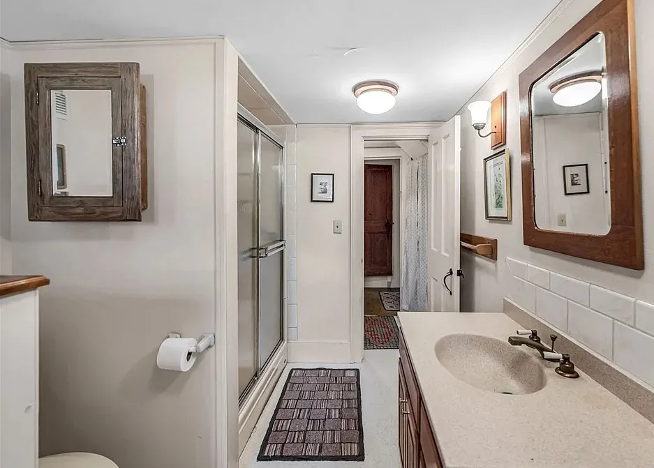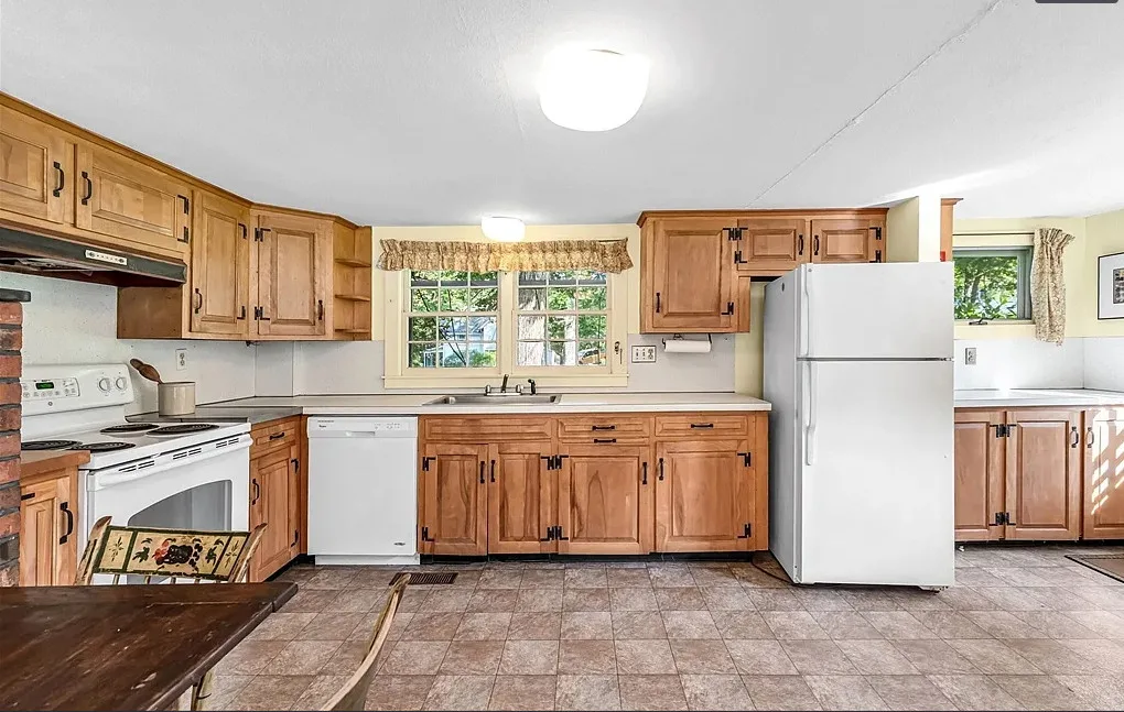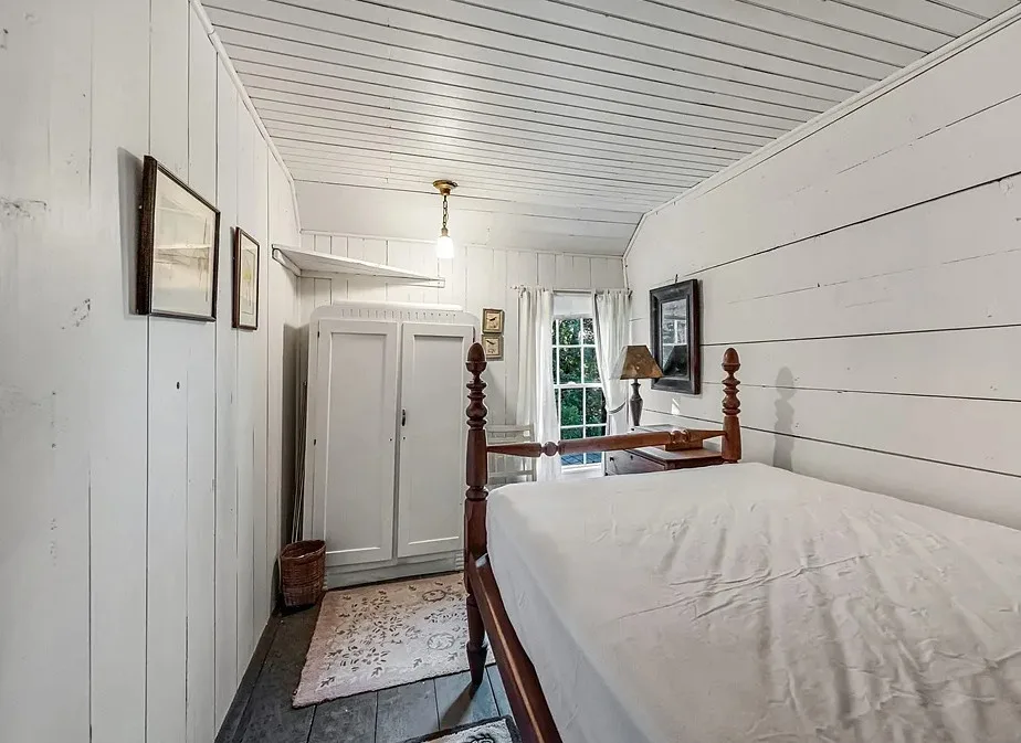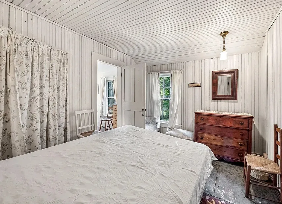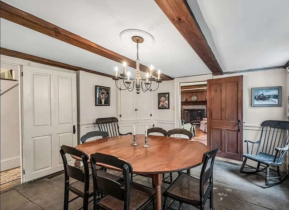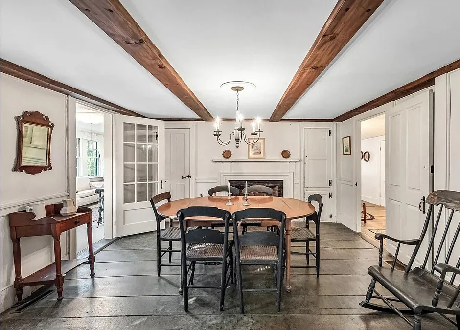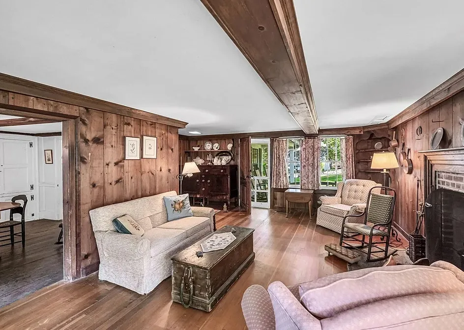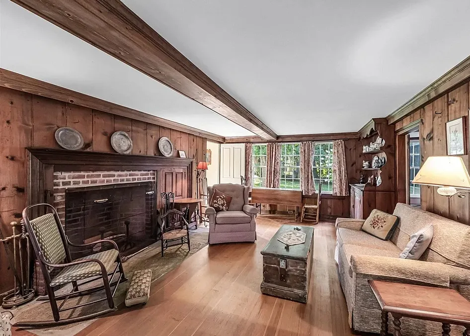 Boasting nine spacious bedrooms, three bathrooms, and over 3,300 square feet of living space, this grand residence has been lovingly cared for by the same family as their cherished summer retreat for decades. Inside, you’ll find timeless architectural details, including wide plank wood floors, post-and-beam construction, and a large central fireplace that anchors the living space. The dining room’s exposed beams and knotty pine walls evoke warmth and rustic elegance, while the spacious kitchen and updated bathrooms blend modern comfort with period charm.