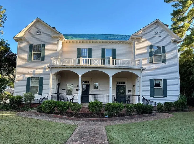 Welcome to a stately 1894 Victorian in South Boston, Virginia, set on a generous 0.41-acre corner lot and wrapped in a classic, covered front porch that instantly sets the tone. At 4,626 square feet, this is a substantial home with character—original wood floors, handsome mantels, and period trim—balanced by cozy, livable spaces like a knotty-pine den with built-in bookcases and a charming built-in china cabinet.