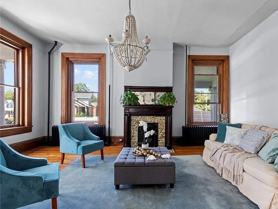 Constructed with 14-inch-thick solid brick walls, a Buckingham slate roof, and a three-car brick garage, the Oliver Mansion is a rare example of durability and artistry. Recent updates include a remodeled bathroom, partial roof and window replacements, lighting and chandeliers, a new hot water heater, updated appliances, and solar panels for enhanced energy efficiency.