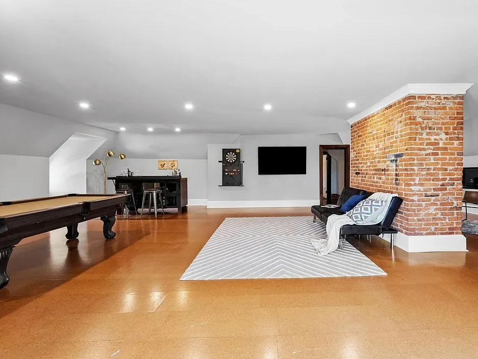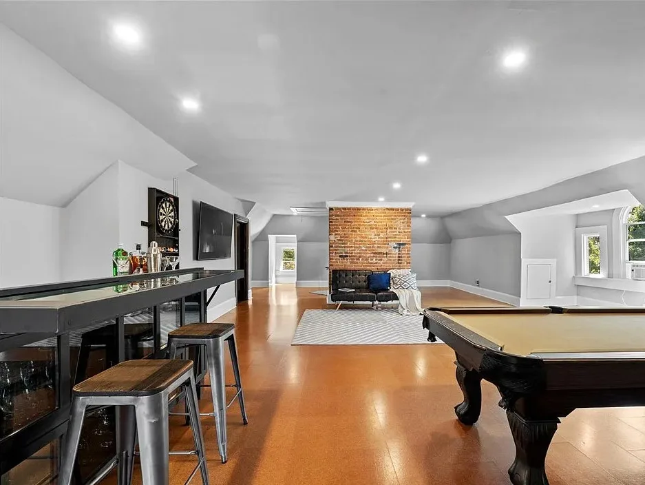 The third floor offers more than 1,000 square feet of bonus space, including a bar, pool table area, and office, perfect for gatherings or creative pursuits. In total, the home includes five bedrooms, five bathrooms (three full, two half), and an additional 1,943-square-foot unfinished basement providing ample storage or potential for future expansion.